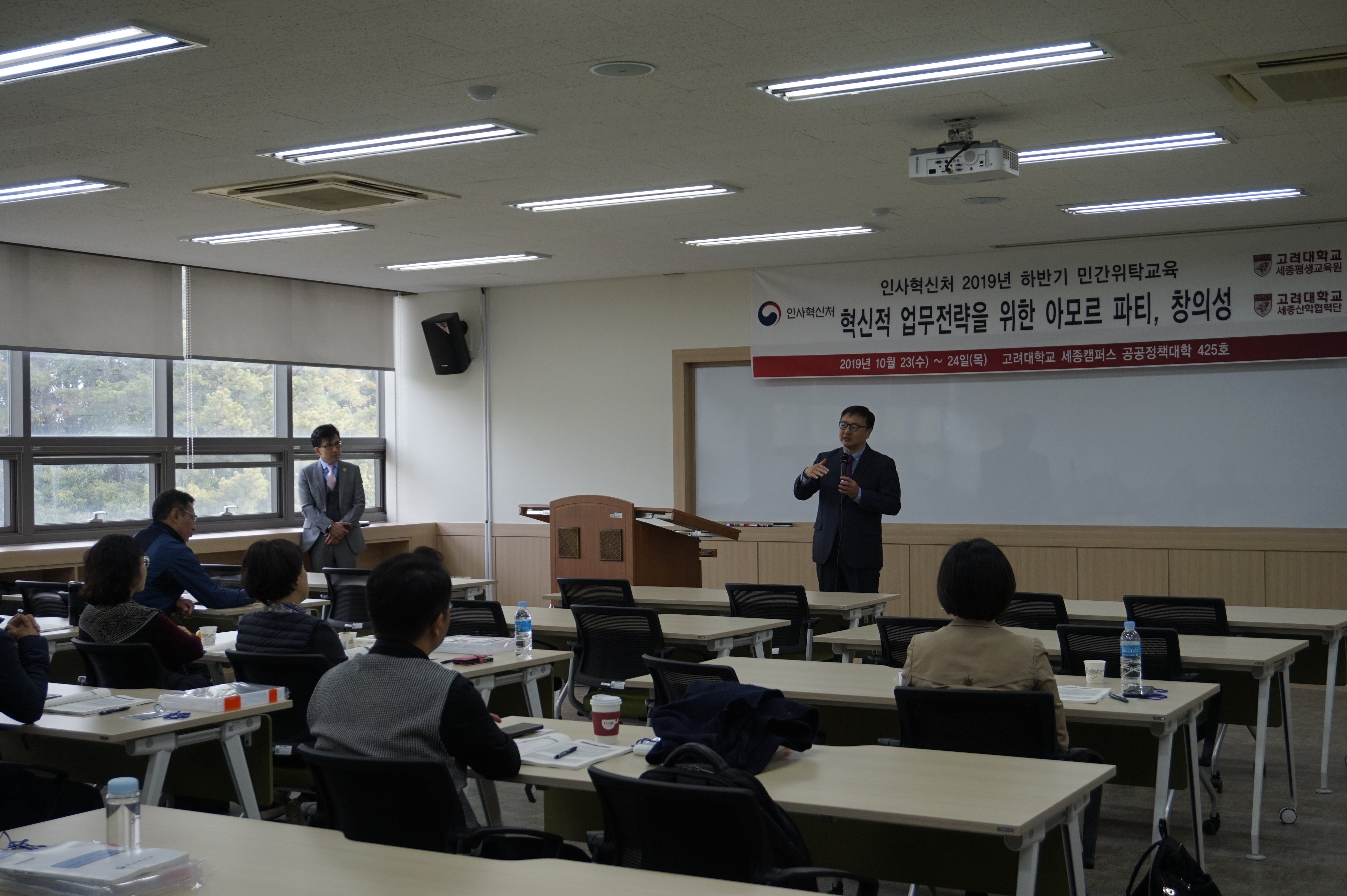 인사혁신처 민간위탁교육은 중앙정부 공무원을 대상으로 21세기 글로벌 시대를 맞이해 창의적 혁신에 대한 이해를 높이고자 기획되었다. ‘아모르 파티, 창의성!’ 교육은 전승환 산학협력단 연구교수가 책임교수로, 고려대학교 글로벌비즈니스대학 교수진과 함께 문화 및 사회적 이론을 사례 중심으로 이해하기 쉽게 강의한다.