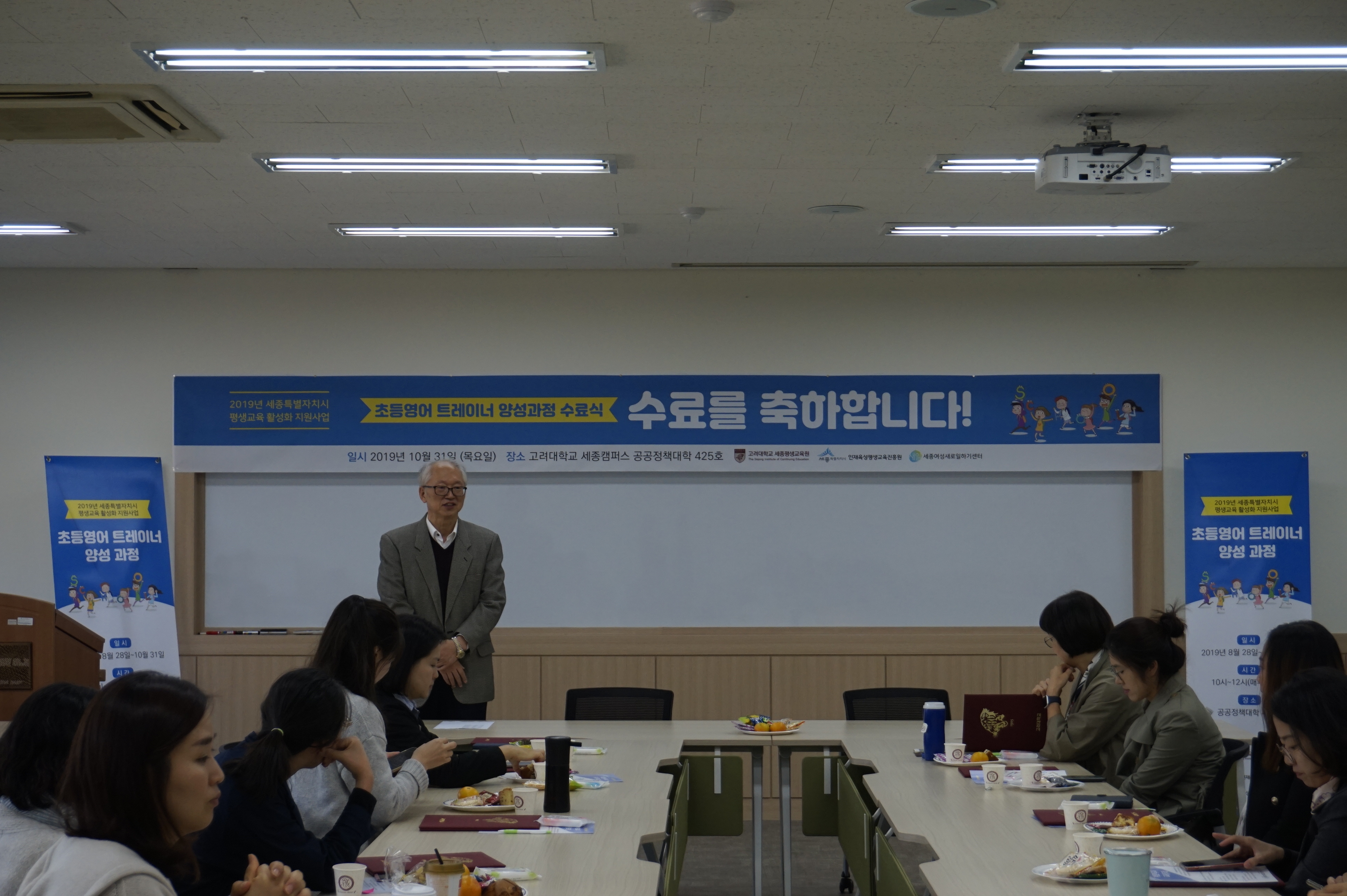 초등영어 트레이너 양성과정은 세종특별자치시인재육성평생교육진흥원에서 주관하고 세종평생교육원에서 운영하는 대학 평생교육 활성화 지원사업의 일환으로 진행되었다. 글로벌비즈니스대학 영미학전공 김형엽 전임교수가 책임교수로, 고려대학교 교수진들과 함께 8월 28일부터 10월 31일까지 약 2개월 간 교육과정을 진행했다.