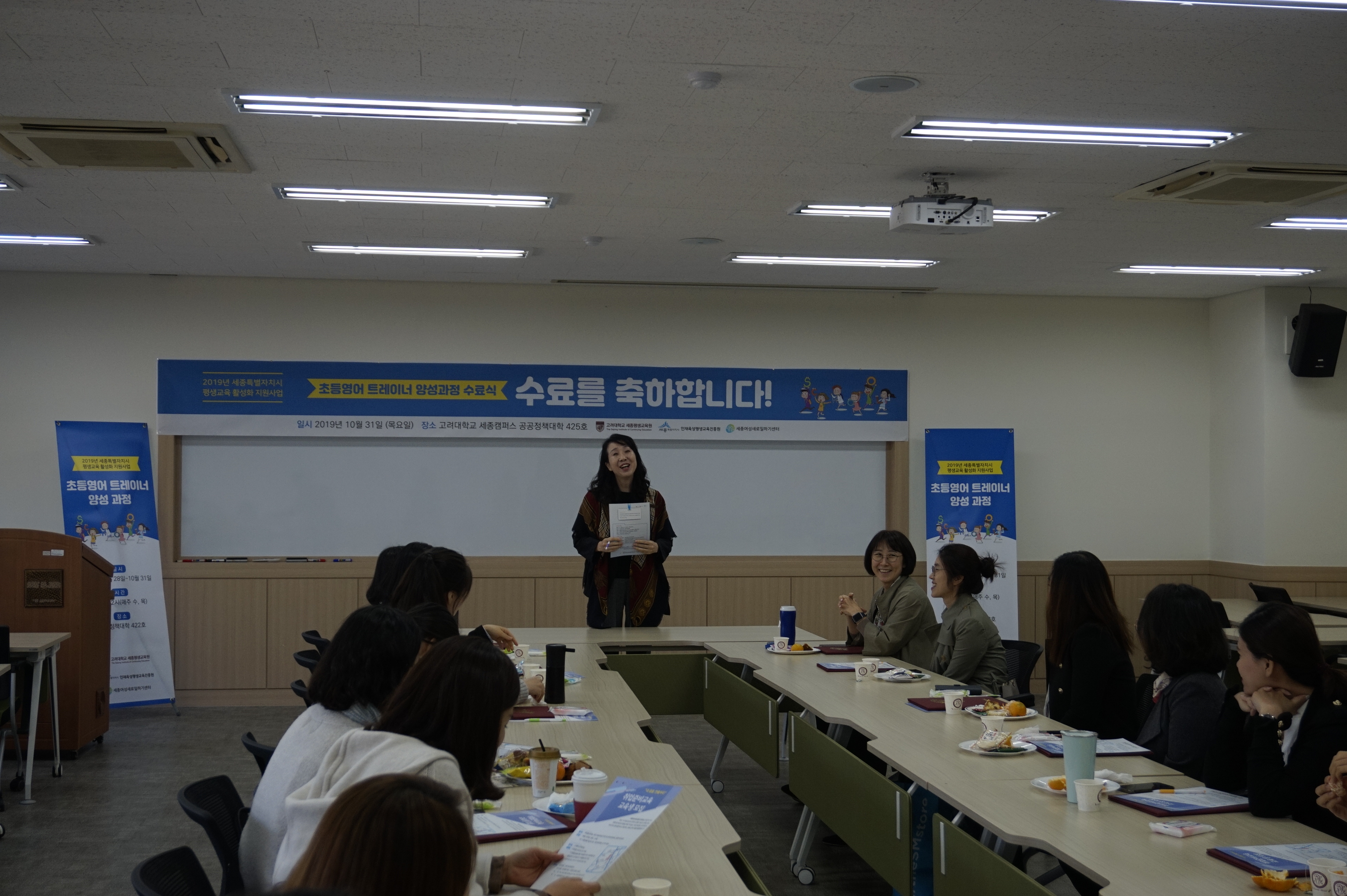 고려대학교 세종평생교육원은 지난 10월 31일 초등영어 트레이너 양성과정 수업 수료식을 공공정책관 425호에서 진행했다고 밝혔다.